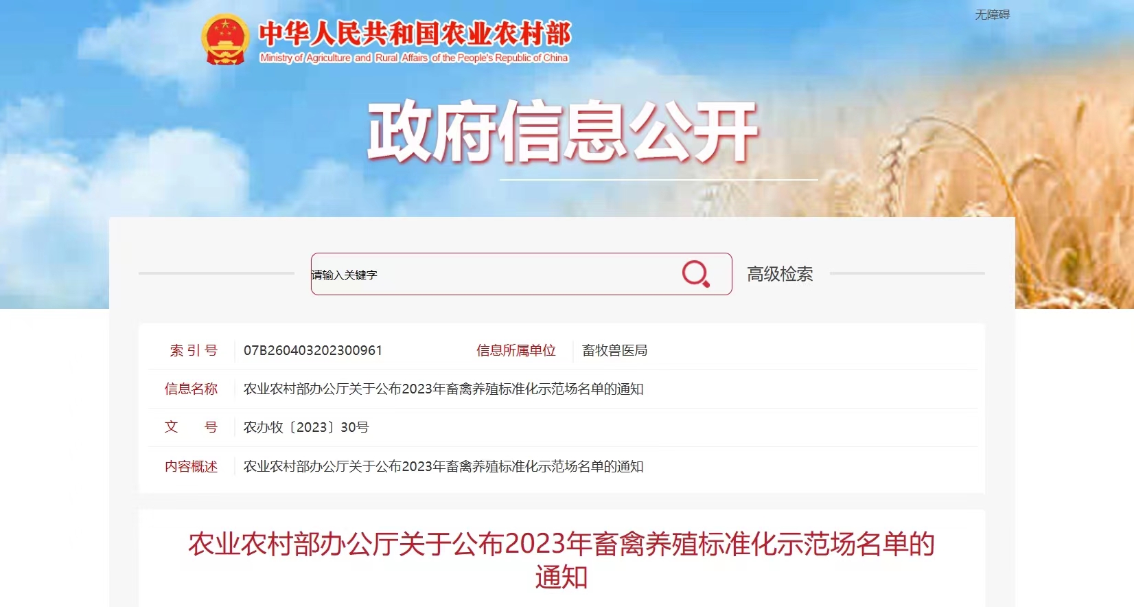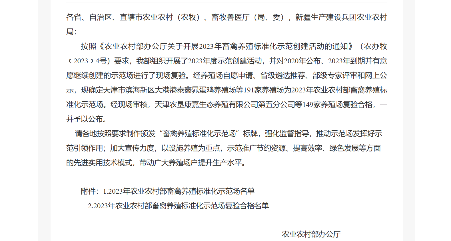 近日,農(nóng)業(yè)農(nóng)村部辦公廳公布了2023年全國191個(gè)畜禽養(yǎng)殖標(biāo)準(zhǔn)化示范場名單,鵬欣集團(tuán)旗下鵬睿農(nóng)牧中陳核心育種場正式獲批部級畜禽養(yǎng)殖標(biāo)準(zhǔn)化示范場。